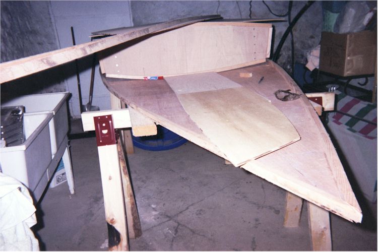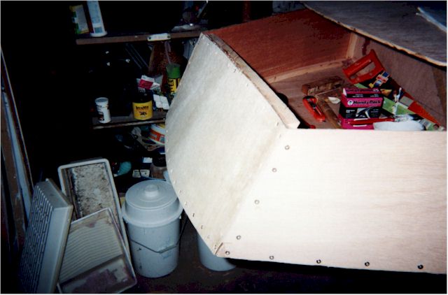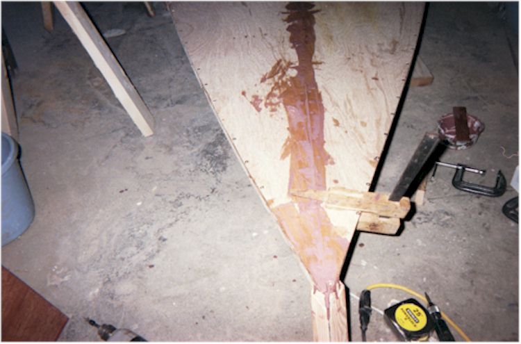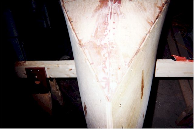 temporarily with nails to the bow frame while attaching it to the hull, I might have