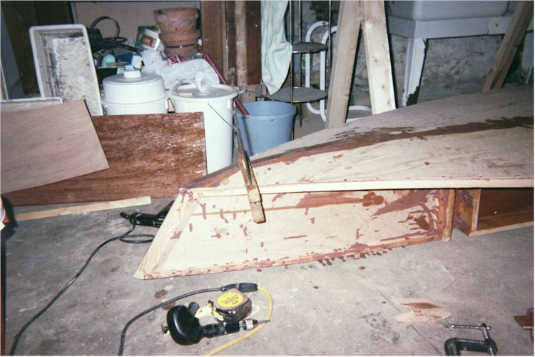 with finish nails while sitting on the hull and then setting it on saw-horses for the