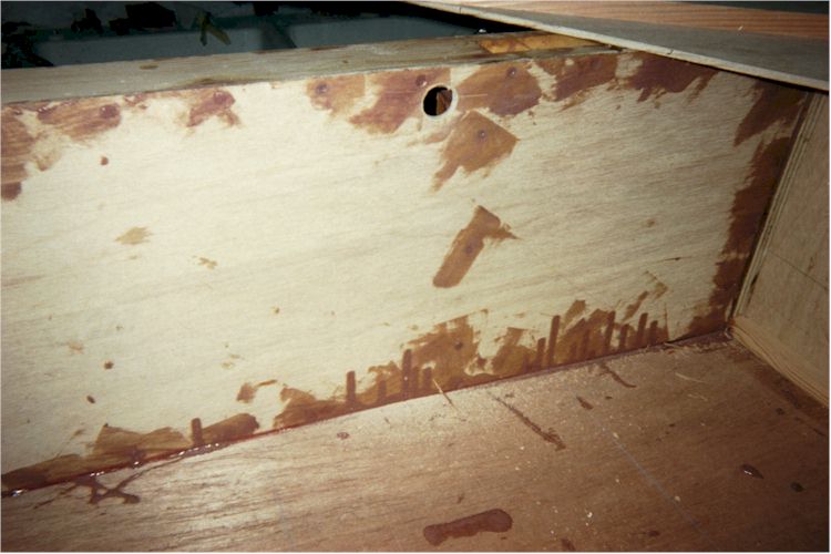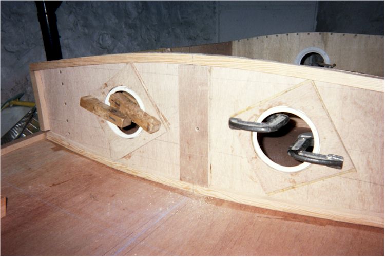 sides of the bow bulkhead. Crack one, split another, re-glue and screw them back