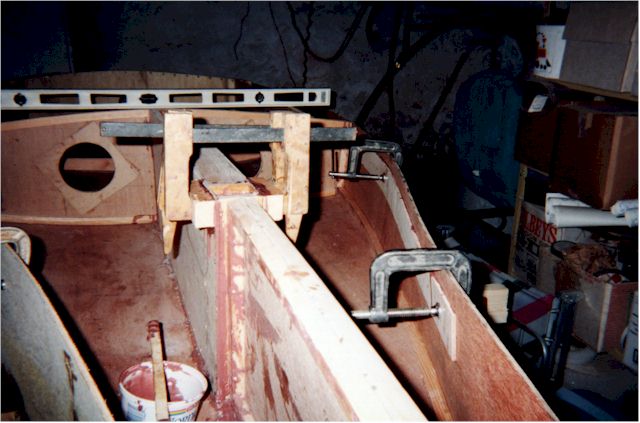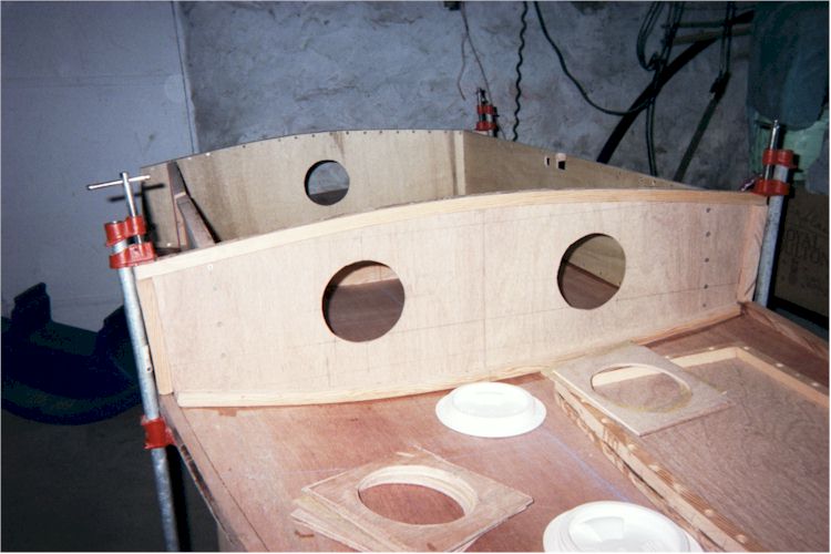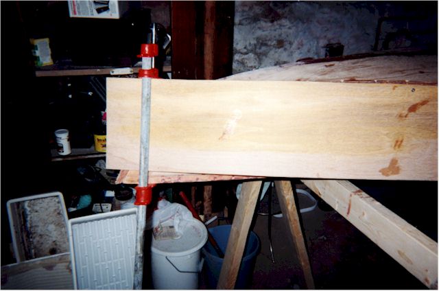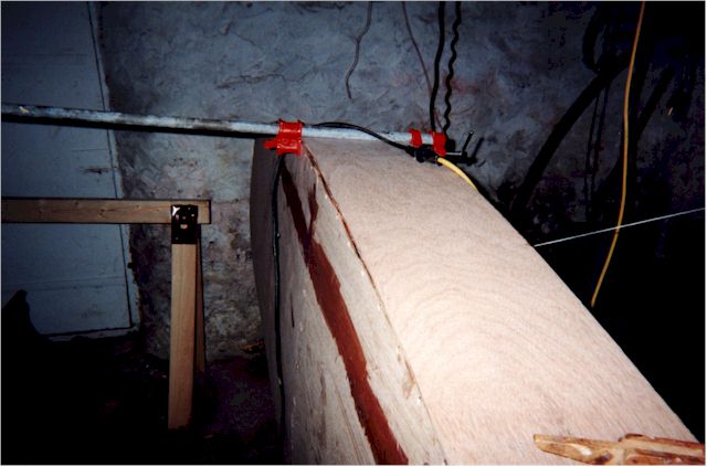 the side follow the curve of the hull. Pipe clamps worked fairly well for this.