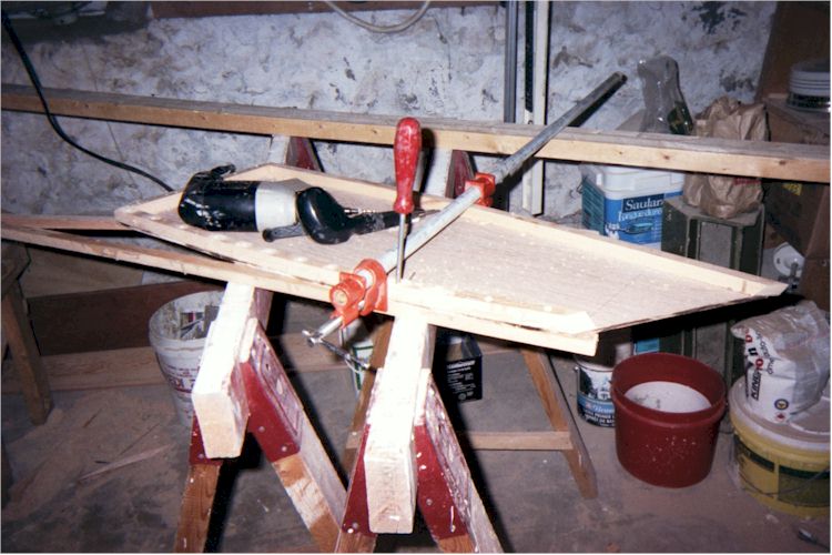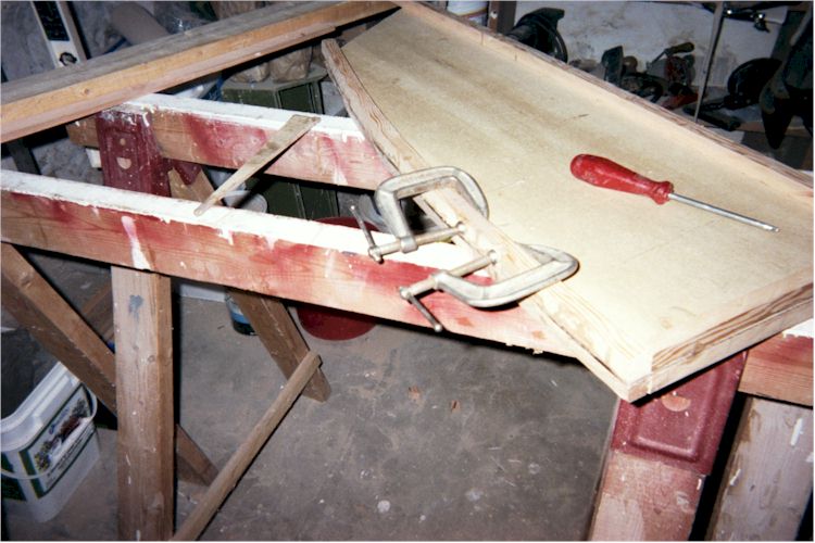 had the glue mixed, I also attached pieces of fir left over from cutting the centre panel