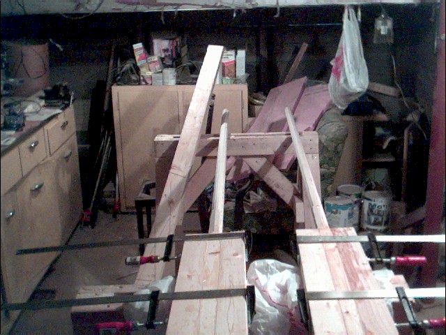 - Using left-over epoxy thickened with silica to glue two 21" long 3" wide (left