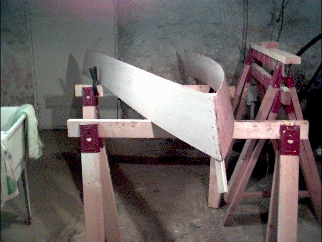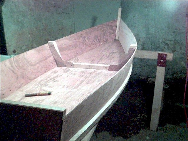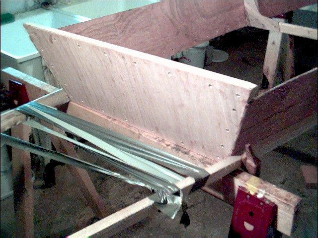 the skiff. Today I cut the sides out and the stem and attached them together.