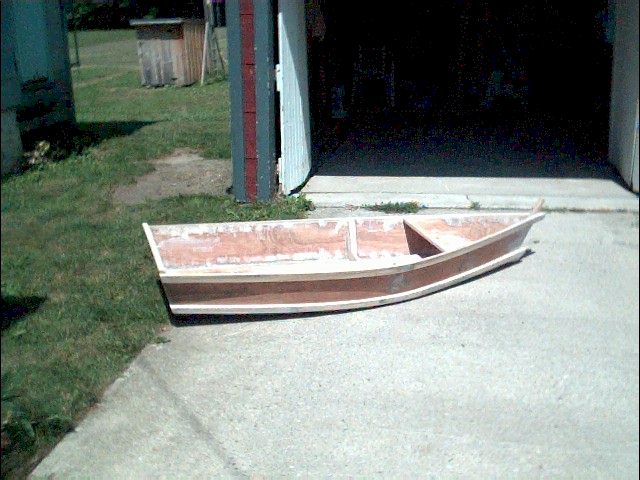 inside of the hull. Carry the boat outside and apply a coat of Alkyd primer the the