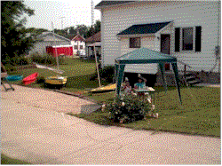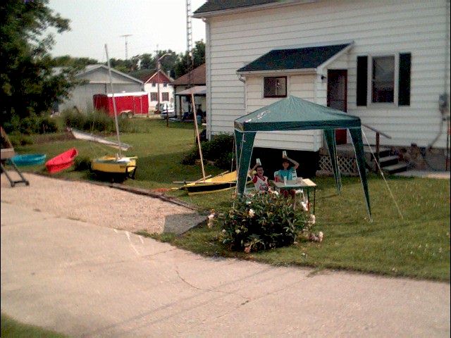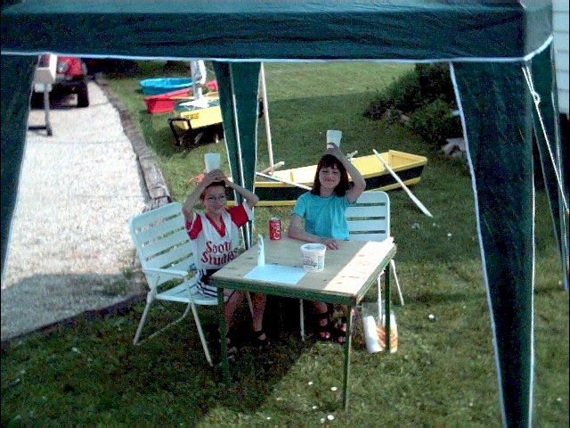 As a member of the BYYB Association I held an open house on June 29, 2002 to show off my craft to other members. Sadly, no other member showed up, but some friends did and I also managed to get a lot of work done on the One Sheet Skiff I was building for a charity auction. My kids also decided to set up a lemonade stand that day.