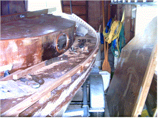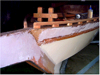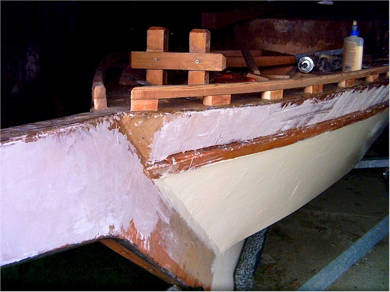 of the crappy fiberglassing work that I did, especially at the bow and sides.