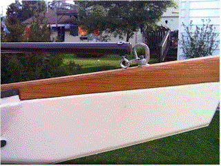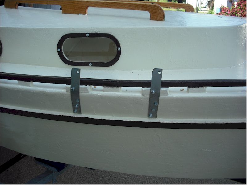 to the hull to act as spacers for the toe-rail. A few days later I went to cut the
