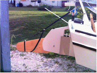 | Finally, I made a sling for the rudder during transport out of some strapping I had