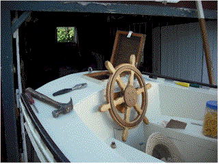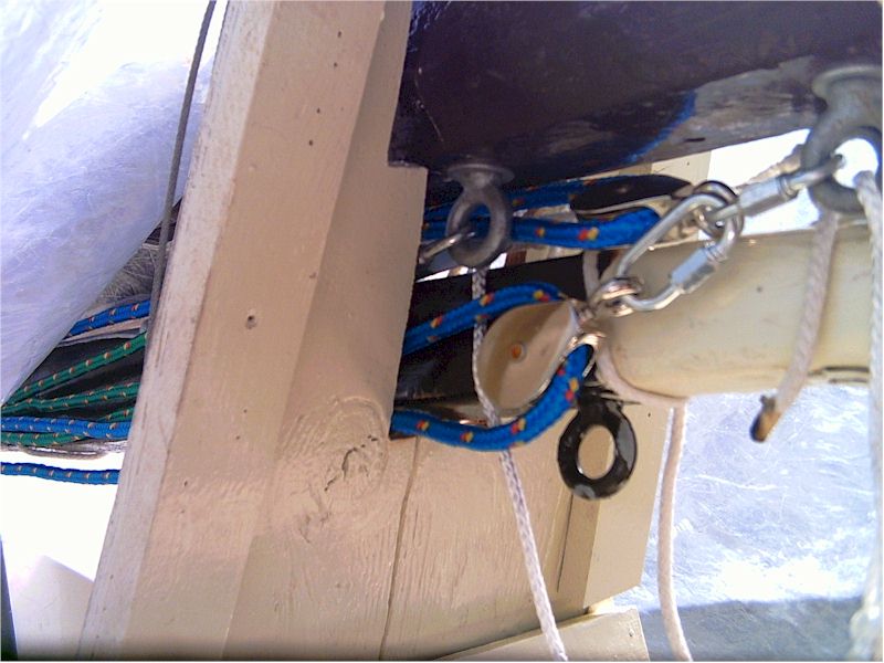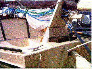 blocks for the throat halyards. This shows the cockpit cover sitting in place as