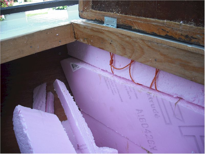 | The forepeak is stuffed with glued in styrofoam. The