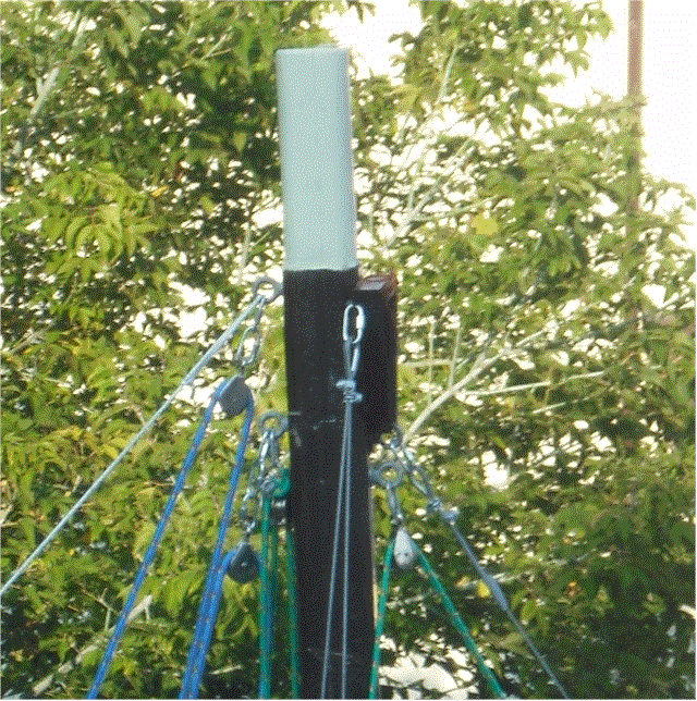 | Add a jib downhaul. I set this up for 1/4" line with a block at the bottom of