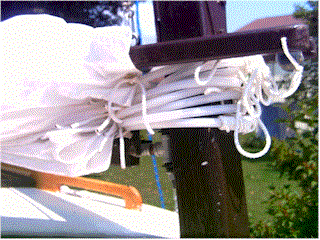 | Using some plastic pipe and 1/4" nylon line, I made some mast hoops that seem to