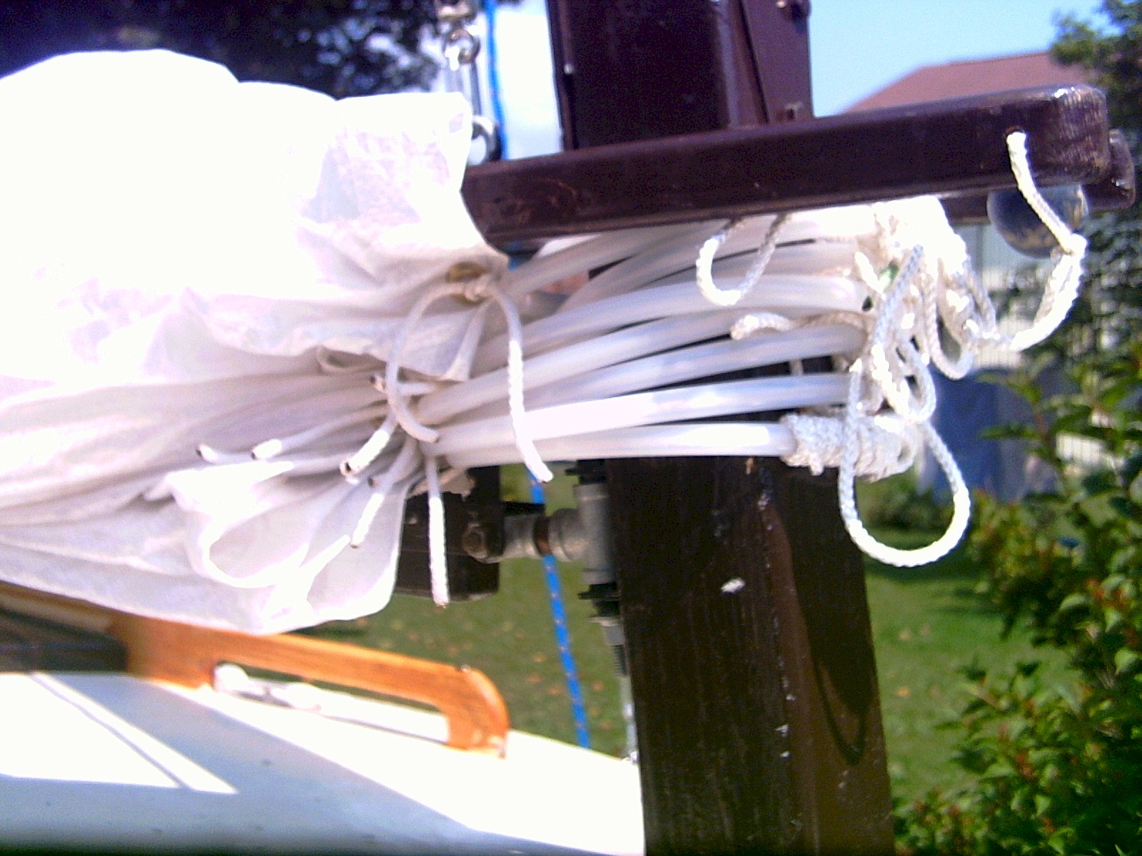| Made a cover for the sail out of spare material. Polytarp seems to degrade in UV