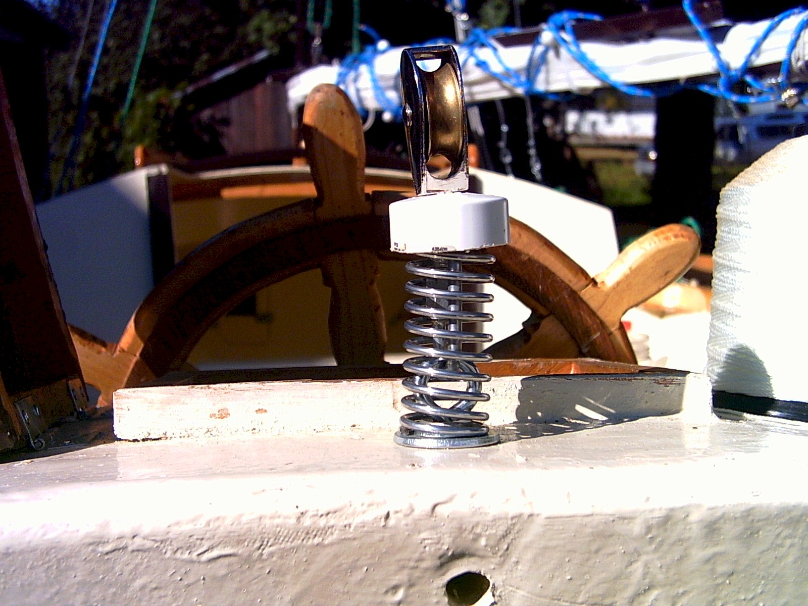 | The tiller line was loose, so I tightened it up and put it under tension. I'll